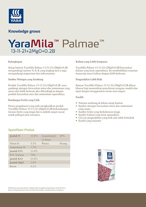 YaraMila 13-11-21 is a compound fertilizer designed to maximize crop yield and quality. Every prill of YaraMila contains nitrogen, phosphorus and potassium as well as secondary and micro nutrients, ensuring balanced nutrition to meet the crop’s nutrient requirement.